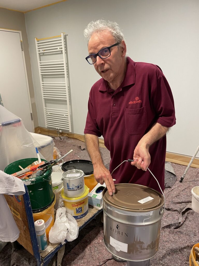 À la retraite, Alain n’a pas tourné la page. Depuis neuf ans, il s’engage comme bénévole au Sainte Elisabeth am Park. Toujours à son rythme, il continue à repeindre des chambres et des espaces communs, avec la même motivation.
