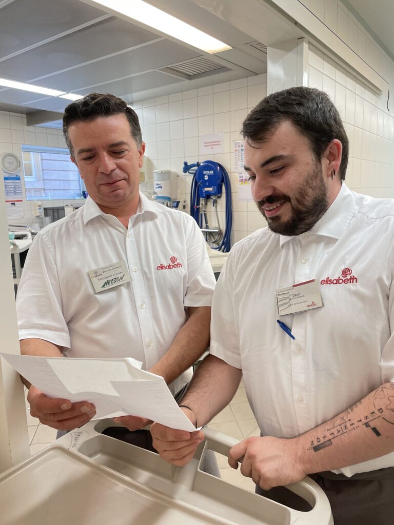 Depuis mon plus jeune âge, j’ai souhaité travailler auprès de personnes âgées. J’ai d’abord suivi une formation d’auxiliaire de vie, mais je ne me sentais pas complètement à l’aise avec la partie soins. J’ai alors décidé de m’orienter vers l’école hôtelière de Diekirch. Après une première expérience dans un restaurant à Stadtbredimus, mon rêve s’est réalisé : il y a quatre ans, j’ai été engagée par Elisabeth dans le service, au sein de la structure d’hébergement pour personnes âgées « Sainte Elisabeth am Park » située au cœur de la ville de Luxembourg.