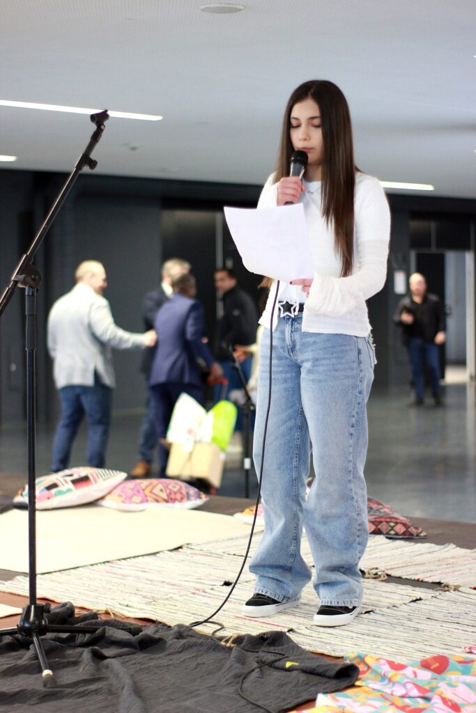 À l’occasion du Festival des Migrations, des Cultures et de la Citoyenneté à LuxExpo, plusieurs jeunes accompagnés par Elisabeth sont montés sur scène pour partager leurs histoires.