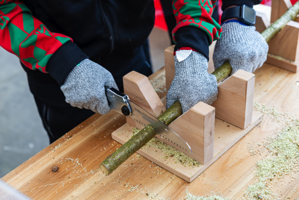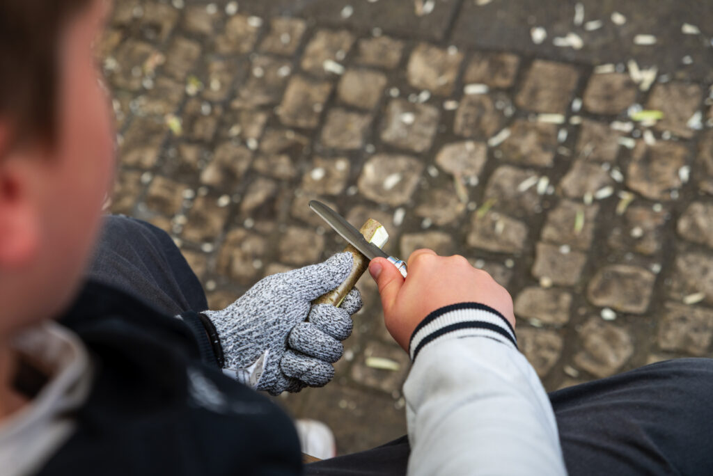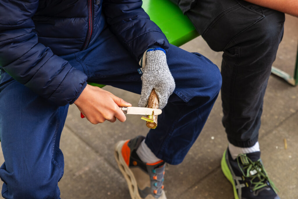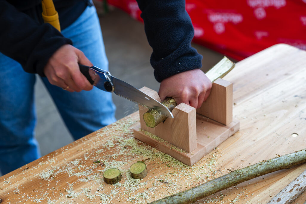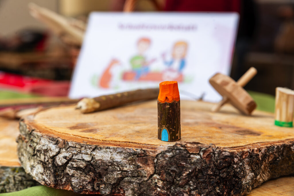 • Sculpture sur bois – concentration et fierté devant chaque petit lutin