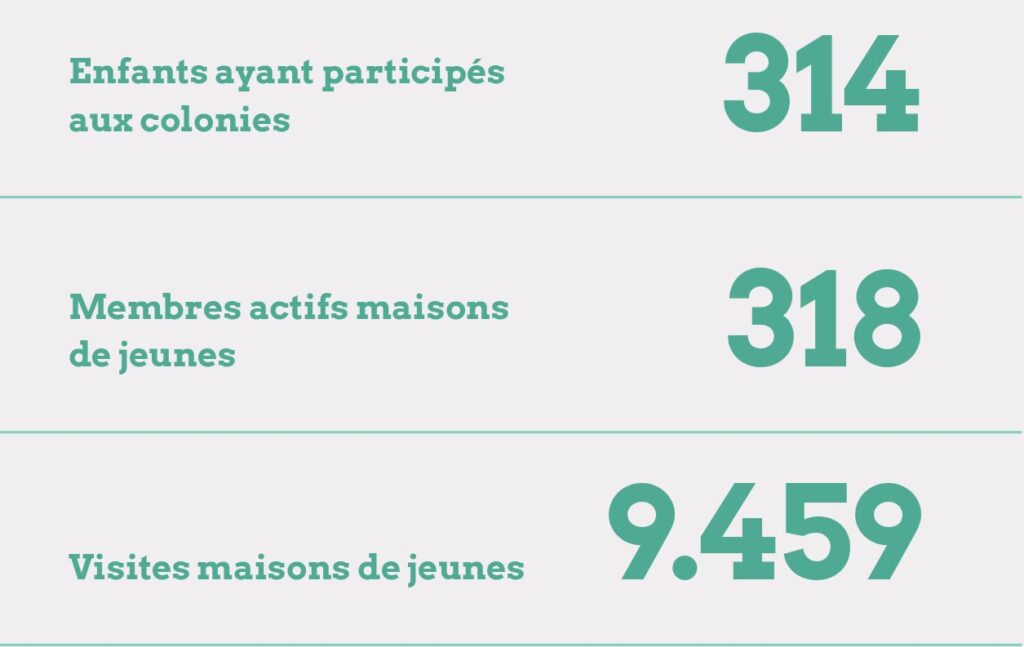 Parallèlement, la digitalisation des services et offres pour jeunes s’est intensifiée. Enfin, l’année a également été marquée par la stabilisation du service colonies de vacances, assurant ainsi la continuité d’une offre éducative enrichissante pour les enfants et adolescents.